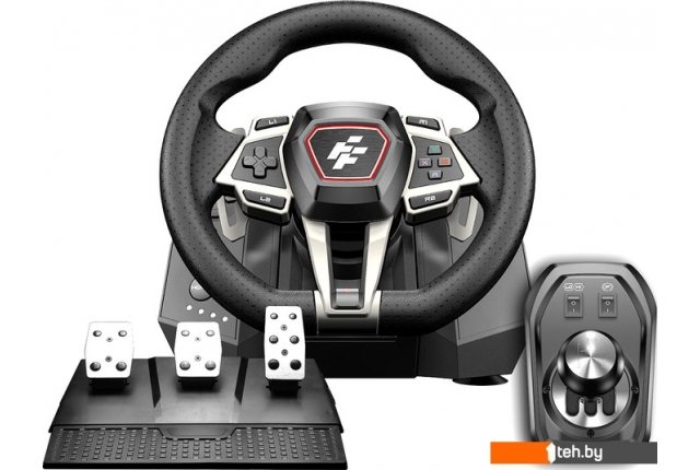 | Комплектация | - игровой руль - коробка передач - педальный блок - адаптер питания - кабель microUSB - кабель USB Type-C - монтажные зажимы - документация |