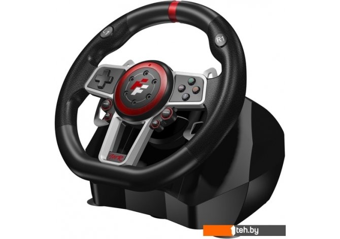 | Информация | Датчик рулевого управления на эффекте Холла2 режима вращения рулевого колеса: 270 и 900 градусовТрехуровневая регулировка чувствительностиRumble вибрация, двойные двигателиСкладные 3 педали: газ, тормоз, сцеплениеПереключение передач: R, 1, 2, 3, 4, 5, 6Пять прочных присосок удерживают колесо в стабильном и безопасном положении. В комплекте 2 монтажных зажима. |
