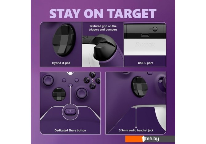 Фотографии, описание и технические характеристики модели Microsoft Xbox Astral Purple взяты из открытых источников, официального сайта производителя или представительства Microsoft в Республике Беларусь.