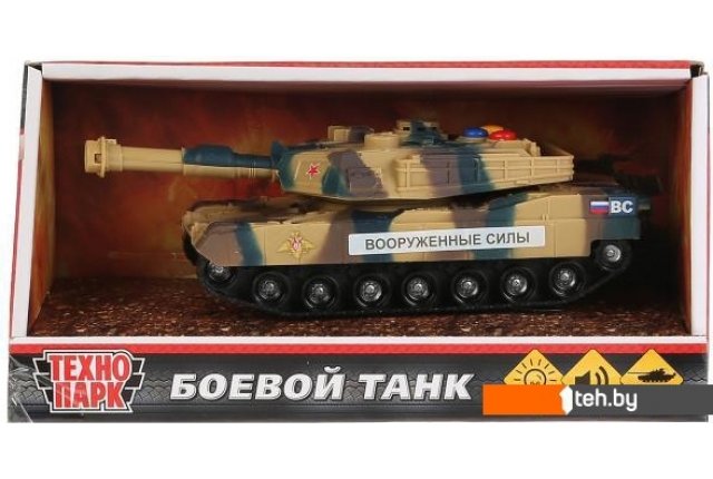 | Информация | Коллекционная модель «Боевой танк» ТМ «Технопарк» — порадует и ребёнка, и коллекционера дизайном цвета хаки, скоростью и функциями: - звуковое сопровождение - световые эффекты - инерционный механизм (достаточно чуть нажать на машинку и потянуть назад – и она автоматически поедет вперёд); Юного водителя увлечёт игра с танком, выполненными с учётом всех особенностей прототипа. С ним ваш маленький любознайка будет придумывать увлекательные спецзадания и спасать мир и стоять на страже порядка. Дизайн выполненный в камуфляжном цвете с надписями и аббревиатурой позволит с головой погрузиться в игру. |