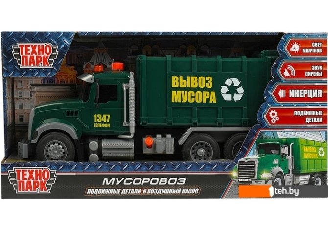 | Информация | ? Инерционная пластиковая модель "Мусоровоз" - отличный подарок для ребенка: ? звук сирены; ? свет маячков; ? подвижные детали; ? воздушный насос; ? инерционный механизм. Пластиковая модель, выполненная с учетом всех особенностей прототипа, обязательно понравится вашему ребенку. Каждая деталь отлично проработана. Реалистичный дизайн данной модели плюс световые и звуковые эффекты позволят с головой погрузиться в игру, придумывая новые интересные сюжеты. Кроме того, эта игрушка познакомит малыша с видами специальной техники. Игра с инерционной моделью развивает координацию движений, внимание, ловкость, фантазию и воображение. |