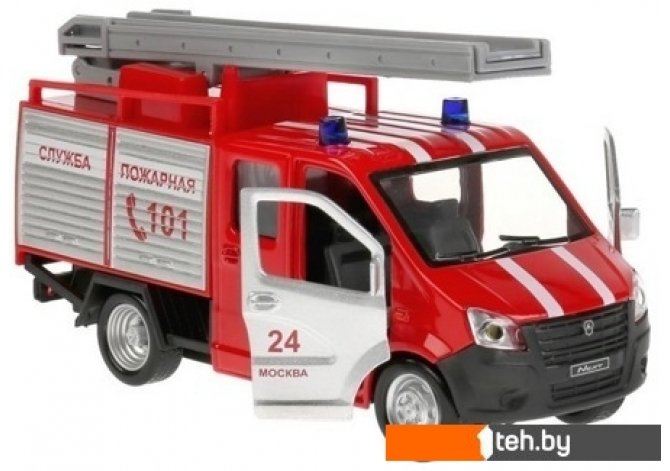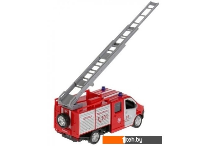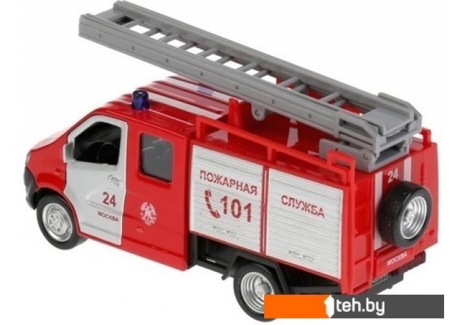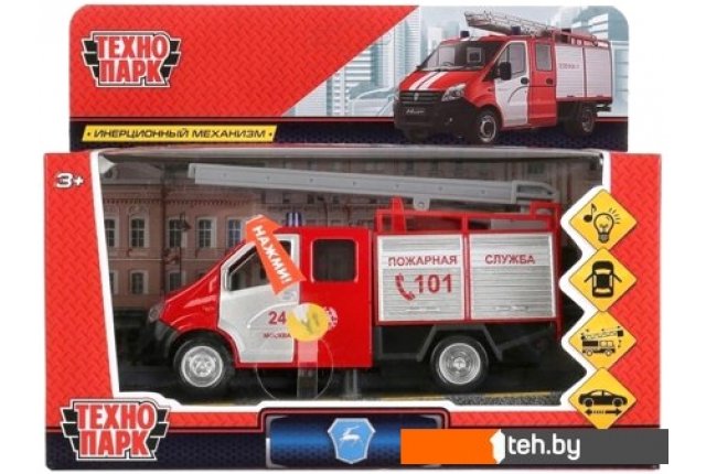 | Информация | Имеет инерционный механизм с отводом назад. Передние двери кабины открываются, внутри оригинальный салон. Машинка имеет светозвуковые эффекты. Нажмите на машинку и вы услышите соответствующие машине звуки (сирена, разговор по рации и др.) и фары машины заморгают. Также выдвигается пожарная лестница. |