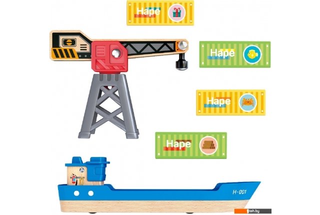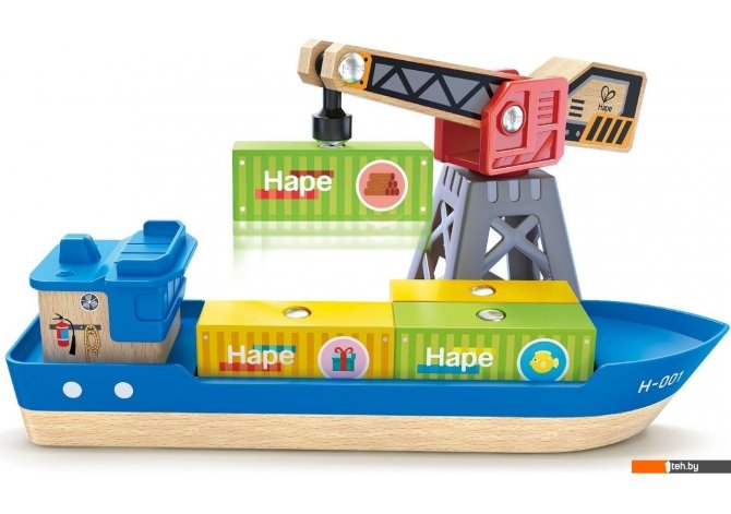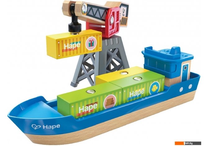 Фотографии, описание и технические характеристики модели Hape Грузовой корабль и подъемный кран. У моря E3792-HP взяты из открытых источников, официального сайта производителя или представительства Hape в Республике Беларусь.