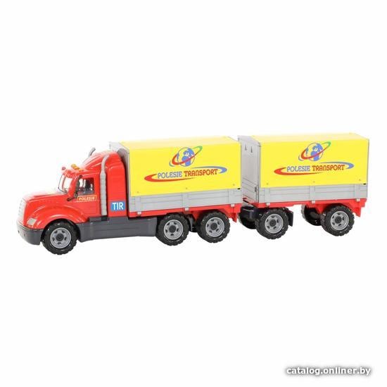 Игрушечный транспорт Полесье Майк автомобиль бортовой тентовый с прицепом 55583