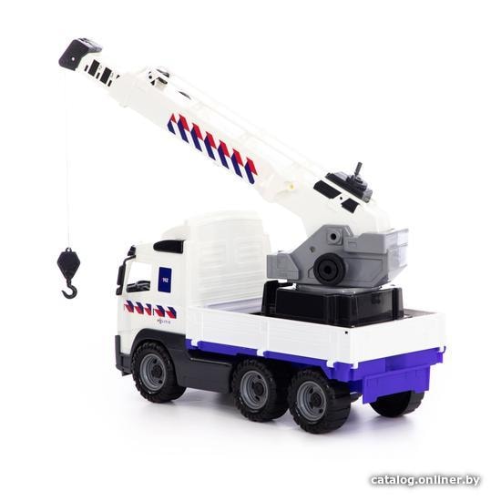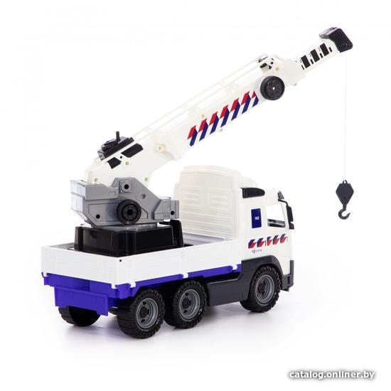 Игрушечный транспорт Полесье Volvo автомобиль-кран с поворотной платформой полицейский 77318