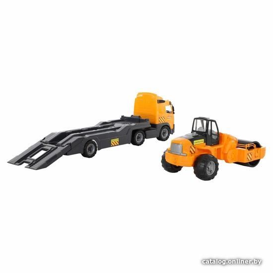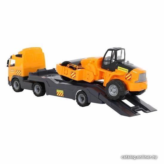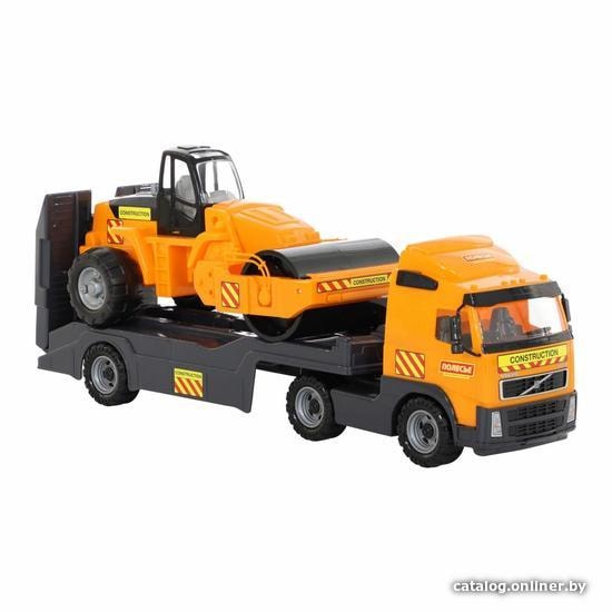 Игрушечный транспорт Полесье Volvo автомобиль-трейлер + дорожный каток 8855