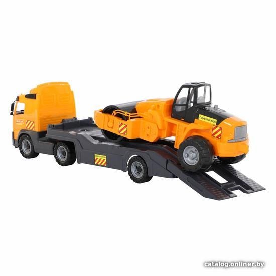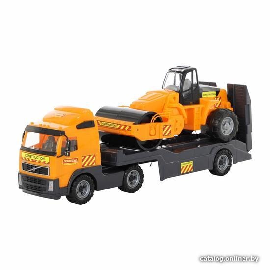 Игрушечный транспорт Полесье Volvo автомобиль-трейлер + дорожный каток 9630