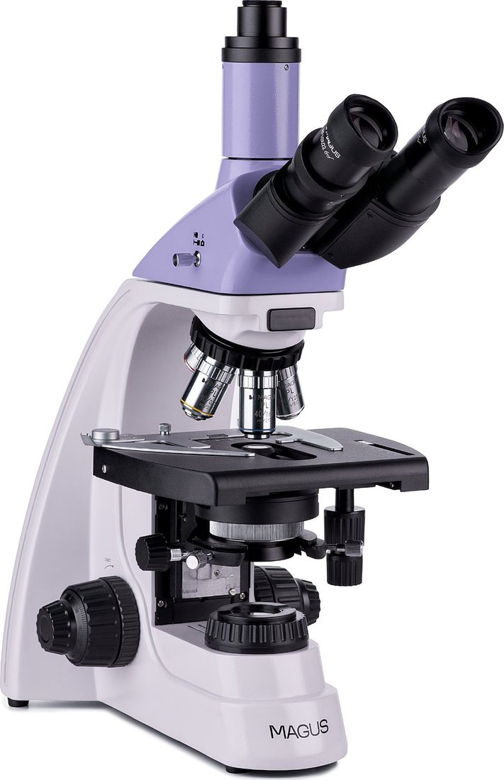 Информация | - Тринокулярный биологический микроскоп MAGUS Bio 250T с отдельным каналом для цифровой камеры – идеальный выбор для лабораторий, где важны не только исследования образцов, но и их фото- и видеофиксация. Микроскоп оснащен планахроматическими объективами и галогенным осветителем, что обеспечивает отличную детализацию при наблюдении прозрачных и полупрозрачных образцов. Исследования проводятся в светлом поле, а также возможна установка дополнительных аксессуаров для работы в темном поле и с фазовым контрастом. - Оптическая схема микроскопа имеет наклонную визуальную часть под углом 30°, что делает длительные наблюдения более комфортными. Окулярные тубусы вращаются на 360°, позволяя настроить их под рост пользователя. Левый тубус оснащен диоптрийной подвижкой, а канал для цифровой камеры расположен вертикально. - Револьверное устройство с пятью гнездами удобно расположено «от наблюдателя», что позволяет легко видеть введенный объектив. В комплект входят четыре объектива, а в пятое гнездо можно установить дополнительный объектив для увеличения диапазона кратности, который в базовой комплектации составляет от 40 до 1000 крат. - Освещение обеспечивается галогенной лампой мощностью 30 Вт, что позволяет проводить длительные наблюдения без перенапряжения зрения. Яркость подсветки регулируется, а конденсор Аббе предлагает центровку и регулировку по высоте. Наличие апертурной и полевой диафрагм позволяет настраивать освещение по методу Кёлера. - Механика микроскопа отличается отсутствием выдвижной рейки у предметного столика, что делает его удобным для длительной работы. Съемный препаратоводитель позволяет легко перемещать образцы. Коаксиальные рукоятки фокусировки расположены с двух сторон корпуса, что обеспечивает комфортное использование. - В линейке аксессуаров для MAGUS Bio 250T представлены различные объективы, окуляры, конденсоры и цифровые камеры, что позволяет расширить функционал микроскопа. - Основные особенности включают тринокулярную оптику, вращающиеся окулярные тубусы, револьвер с пятью объективами и мощный источник света, что делает этот микроскоп универсальным инструментом для исследований. - Комплектация включает все необходимые элементы для работы, такие как штатив, конденсор, объективы и окуляры, а также дополнительные аксессуары можно заказать отдельно для расширения возможностей микроскопа. |