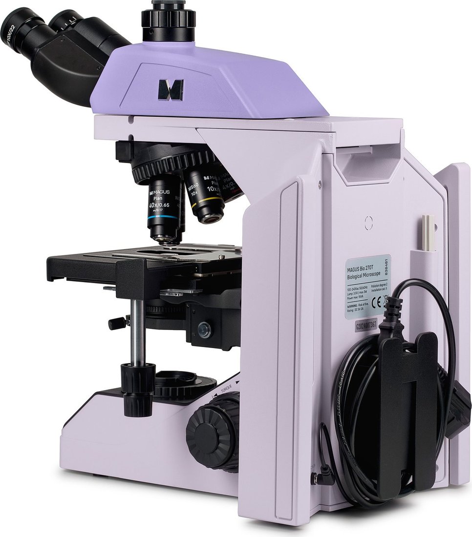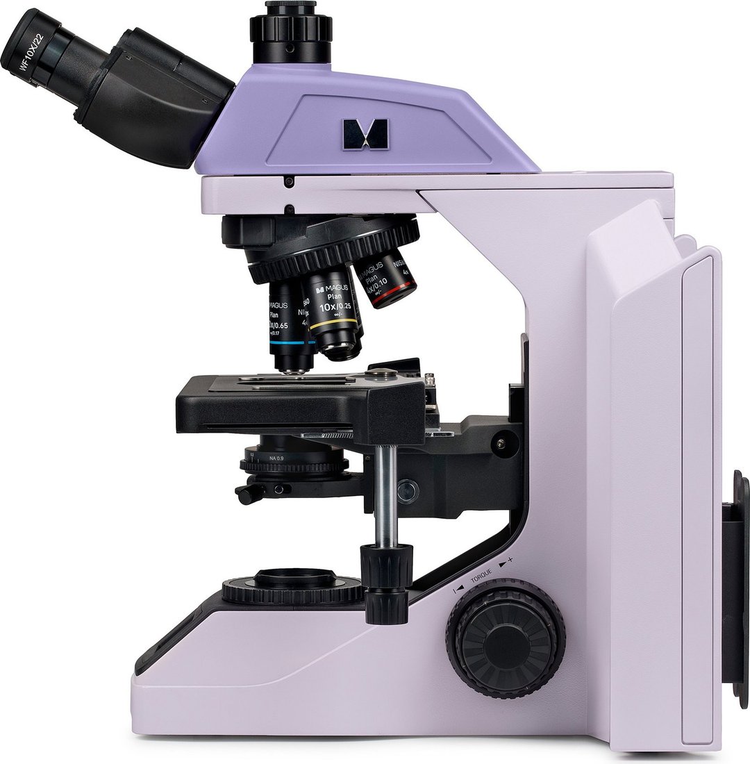 Информация | - Микроскоп исследовательского класса, идеально подходящий для наблюдения прозрачных и полупрозрачных биологических образцов в светлом поле. Возможность установки дополнительных компонентов позволяет использовать методы темного поля, фазового контраста, люминесценции и поляризации. - Кодированный револьвер обеспечивает комфортную яркость при смене объективов, а интеллектуальное управление освещением повышает эффективность работы исследователя, позволяя сосредоточиться на задачах без отвлечений на настройки. - Тринокулярная визуальная насадка с оптикой, рассчитанной на бесконечность, вращается на 360°. Пользователь может выбрать высоту выноса зрачка, а цифровая камера устанавливается в вертикальный тубус с делением светового потока 50/50. В комплект входят окуляры 10х/22 мм с диоптрийной коррекцией. - Кодированный револьвер на 5 объективов позволяет пользователю видеть активный объектив, а свободное гнездо дает возможность установить дополнительный объектив для увеличения. Парфокальная высота объективов составляет 60 мм. - Интеллектуальное управление яркостью света исключает резкие изменения при смене увеличений, что снижает утомление глаз и оптимизирует рабочий процесс. - Механизм тонкой фокусировки с плавным ходом и углублениями под пальцы снижает нагрузку на запястье. Рукоятки фокусировки расположены низко, что позволяет занять комфортную позу во время работы. - Предметный столик без выдвижной рейки повышает эргономичность, а длинная ручка управления обеспечивает комфорт при работе. - Конденсор Аббе центрируется и регулируется по высоте, а кольцо регулирует ирисовую апертурную диафрагму для достижения контрастного изображения. - Осветитель с 3-ваттным светодиодом имеет регулируемую цветовую температуру от 3000 до 7000 К, что позволяет выбрать комфортный свет для глаз. Срок службы светодиода составляет 50 000 часов. - Освещение по Кёлеру улучшает качество изображения, обеспечивая равномерное освещение поля зрения и удаляя артефакты. - ЖК-экран на основании микроскопа отображает увеличение объектива, яркость и цветовую температуру, а также режим работы, что упрощает настройку. - Эргономичная конструкция микроскопа обеспечивает комфорт во время работы, позволяя избежать физического дискомфорта и усталости. - В комплект входят все необходимые элементы, включая штатив, конденсор, объективы и окуляры. Также доступны дополнительные аксессуары для расширения функционала. - Микроскоп MAGUS Bio 270T — это идеальный инструмент для профессиональных исследований, обеспечивающий высокое качество и комфорт в работе. |