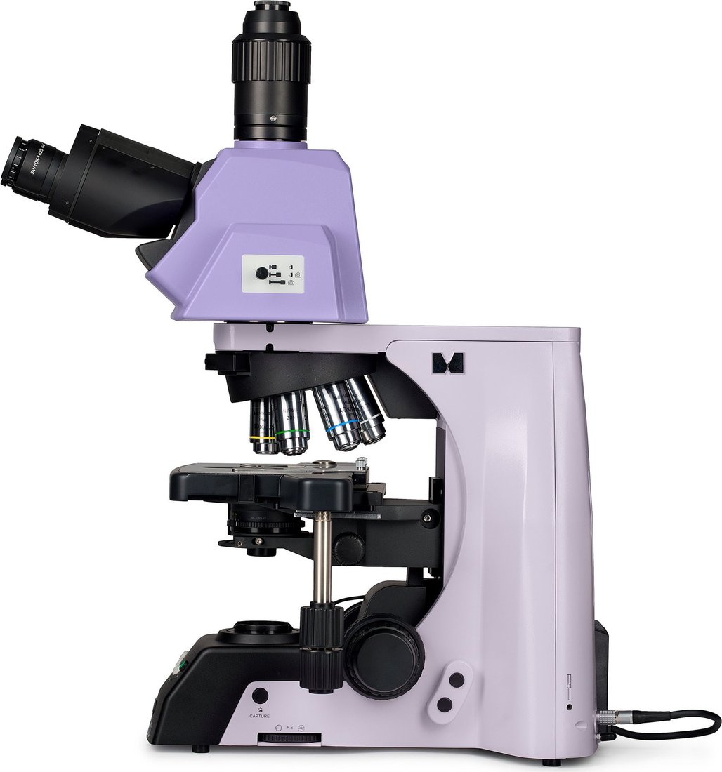 Информация | - Микроскоп исследовательского класса, идеально подходящий для наблюдения прозрачных и полупрозрачных биологических образцов в проходящем свете. Возможность установки опциональных компонентов расширяет функционал, позволяя использовать методы темного поля, фазового контраста и люминесценции. - Моторизированные револьвер и конденсор автоматизируют процесс переключения объективов и настройки освещения, что позволяет пользователю сосредоточиться на исследованиях и повышает скорость выполнения операций. Этот микроскоп отлично подходит для микробиологического анализа и медицинской диагностики. - Тринокулярная визуальная насадка с оптикой, рассчитанной на бесконечность, позволяет выбрать комфортный угол наклона от 0 до 35°. В базовой комплектации предусмотрены окуляры 10х/25 мм с диоптрийной коррекцией, что делает работу удобной для пользователей в очках. - Моторизированный револьвер на 6 объективов обеспечивает удобный доступ к каждому из них, а свободное пространство над столиком позволяет легко устанавливать дополнительные объективы. Объективы планахроматические с парфокальной высотой 60 мм. - Удобное дистанционное управление револьверным устройством с кнопками на передней панели позволяет быстро переключать объективы. Освещение и положение конденсора автоматически настраиваются в зависимости от выбранного объектива, что значительно повышает комфорт работы. - При смене увеличений яркость света может меняться, что может вызывать утомление глаз. Однако MAGUS Bio 290T оснащен интеллектуальным управлением яркостью, которое автоматически настраивает уровень освещения для каждого объектива, экономя время на регулировку. - Рукоятки фокусировки расположены низко, что позволяет пользователю занять комфортную позу. Блокировка грубой фокусировки и возможность регулировки жесткости делают процесс настройки микроскопа быстрым и удобным. - Предметный столик из сапфирового стекла обеспечивает высокую прочность и долговечность. Длинная ручка управления столиком позволяет работать без напряжения, что повышает комфорт пользователя. - Конденсор с откидной линзой автоматически настраивается для каждого объектива, что упрощает работу. Центрирование и регулировка по высоте делают его использование еще более удобным. - Осветитель с 3-ваттным светодиодом обеспечивает стабильную цветовую температуру и долгий срок службы. Освещение по Кёлеру улучшает качество изображения, достигая равномерного освещения без затемнений. - Эргономичная конструкция микроскопа способствует повышению продуктивности, а моторизированные компоненты упрощают выполнение повторяющихся операций. Пользователь может выбрать комфортный угол наклона визуальной насадки и не напрягать кисти рук во время работы. - В комплект входят все необходимые аксессуары, включая объективы и окуляры, а также возможность расширения функционала с помощью дополнительных аксессуаров, таких как фазово-контрастные устройства и цифровые камеры. |