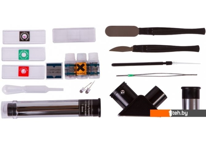 | Состав набора | ТелескопОкуляр H12,5 ммОборачивающий окуляр 18 ммДиагональное зеркалоИскатель оптический, 2xНастольная треногаСветящиеся в темноте стикеры на астрономическую тематикуМикроскопГотовые препараты – 3 шт.Предметные стекла – 3 шт.Покровные стекла – 5 шт.Наклейки для стекол – 5 шт.Пластиковая пипеткаСкальпельПинцетЛопаточкаПрепаровальная иглаФлакон с красителем – 2 шт.Запасная лампочка – 2 шт.Флакон с фиксаторомИнструкция по эксплуатации и гарантийный талон |
