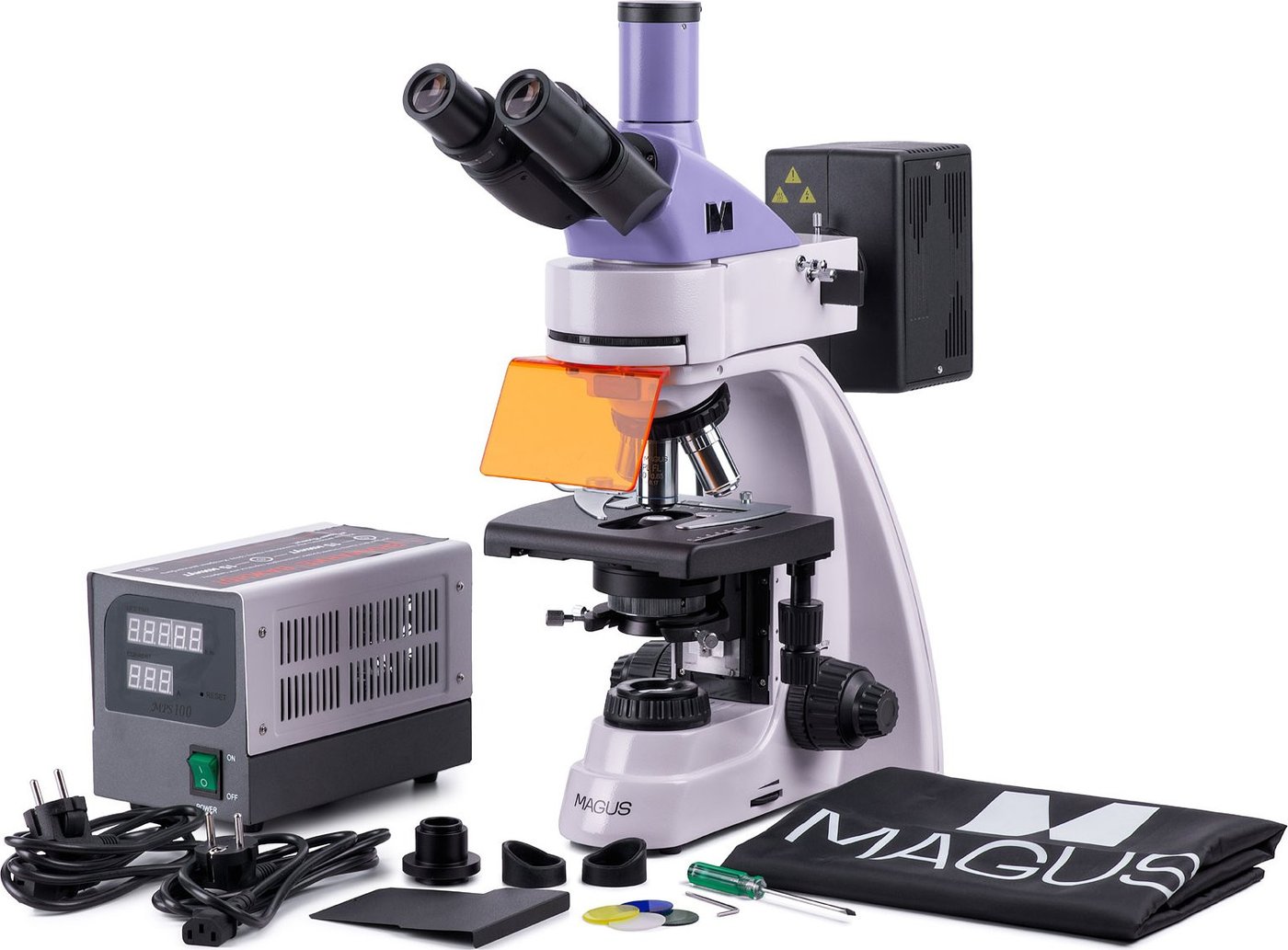 Информация | - MAGUS Lum 400 – профессиональный микроскоп прямой конструкции, предназначенный для исследований с использованием люминесцентного метода в отраженном свете и метода светлого поля в проходящем свете. Дополнительные аксессуары, доступные по заказу, расширяют функционал микроскопа, позволяя применять темнопольный метод, метод простой поляризации и фазово-контрастную микроскопию. Этот микроскоп находит применение в различных областях науки, таких как криминалистика, медицина, фармакология и ветеринария, где изучают возбудителей заболеваний, проводят анализ ДНК и исследуют костный мозг. - Оптическая схема включает тринокулярную насадку для установки цифровой камеры (не входит в комплект) и окулярные тубусы, которые вращаются на 360°, что позволяет адаптировать высоту взора под любого пользователя. Наклоненные на 30° окулярные тубусы обеспечивают комфорт при длительной работе. - Оптика микроскопа планахроматическая, рассчитанная на бесконечность. В комплект входят три объектива для светлого поля и один микрофлюар для люминесценции. Револьверное устройство имеет пять свободных гнезд, одно из которых можно использовать для установки дополнительного объектива из линейки аксессуаров MAGUS. - Система освещения включает верхний осветитель с ртутной лампой мощностью 100 Вт, обеспечивающей яркое освещение с пиками на определенных длинах волн для использования различных флуоресцентных красителей. Лампа легко заменяется и может быть отцентрирована. Для люминесценции предусмотрены четыре фильтра возбуждения: UV, V, B и G. - Нижний осветитель – галогенная лампа мощностью 30 Вт, обеспечивающая комфортное освещение для глаз. Светлопольный конденсор позволяет точно регулировать световой пучок и имеет слот для установки слайдера темного поля или фазового слайдера, что упрощает доступ к новым методам исследования. - Освещение по методу Кёлера настраивается как в проходящем, так и в отраженном свете, что позволяет достигать предела разрешения и устранять артефакты изображения. - Механика микроскопа отличается эргономичным дизайном: отсутствие выдвижной зубчатой рейки у предметного столика улучшает удобство работы. Столик можно дополнить черной вставкой для работы в отраженном свете, а препаратодержатель при необходимости легко снимается. - Рукоятки грубой и тонкой фокусировки расположены коаксиально, что обеспечивает плавную настройку фокуса без рывков и возможность регулировки жесткости хода. - В линейке аксессуаров MAGUS представлены различные принадлежности, включая окуляры, объективы, конденсоры темного поля, фазово-контрастные устройства и цифровые камеры, что позволяет значительно расширить функционал микроскопа. - Основные особенности включают люминесцентный метод исследований, возможность использования дополнительных аксессуаров, тринокулярную насадку с вертикальным каналом для цифровой камеры, а также высококачественные объективы-планахроматы. - Комплектация включает все необходимые элементы для работы, такие как штатив, конденсор, люминесцентная насадка, объективы и множество аксессуаров, что делает микроскоп готовым к использованию сразу после покупки. - Дополнительные аксессуары, доступные по заказу, позволяют еще больше расширить возможности микроскопа, включая различные окуляры и объективы, а т