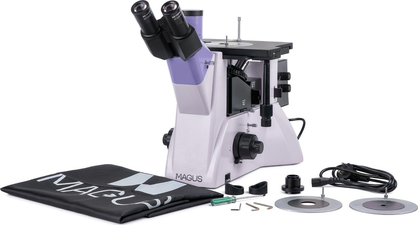 Информация | - Инвертированная конструкция металлографического микроскопа MAGUS Metal V700 BD позволяет исследовать крупные объекты весом до 2 кг. Исследуемая сторона должна быть плоской и обработанной, а геометрия остальных частей объекта не имеет значения. Этот микроскоп идеально подходит для металлургической и металлообрабатывающей промышленности, а также для лабораторий контроля качества и высших учебных заведений. В процессе исследований применяются методы светлого поля, темного поля и поляризованного света. - Тринокулярная визуальная насадка может поворачиваться на 180°, обеспечивая отдельный канал визуализации с делителем светового потока 50/50 и 100/0. В корпусе микроскопа также имеется дополнительный канал с делителем 100/0 и 0/100. Револьверное устройство под образцом имеет 5 гнезд для объективов, что позволяет использовать дополнительные объективы без необходимости снимать базовые. - Осветитель с галогенной лампой мощностью 50 Вт обеспечивает комфортные наблюдения в светлом, темном и поляризованном полях. Цветовая температура освещения теплого оттенка помогает избежать усталости глаз при длительной работе. Освещение можно настраивать по методу Кёлера, а светофильтры упрощают регулировку контрастности. В системе также присутствует устройство для работы в темном поле. - Перемещение образца осуществляется с помощью предметного столика по осям X и Y. В центре столика установлена поворотная круглая вставка с отверстиями диаметром 10 мм, 20 мм и 30 мм. Механизмы фокусировки позволяют точно настраивать фокус как грубо, так и тонко, а коаксиальное расположение рукояток делает работу удобной. - Возможности микроскопа можно расширить с помощью дополнительных аксессуаров, таких как окуляры, объективы с большим рабочим расстоянием, цифровые камеры и калибровочные слайды. - Основные особенности включают инвертированную конструкцию, револьвер на 5 объективов, тринокулярную визуальную насадку, два канала визуализации и мощный осветитель, что делает этот микроскоп универсальным инструментом для различных исследований. - В комплект входят штатив с механизмом фокусировки, осветитель, тринокулярная насадка, четыре планахроматических объектива, два окуляра, адаптер C-mount, ключ-шестигранник, сетевой шнур и пылезащитный чехол. Инструкция по эксплуатации и гарантийный талон также включены. - Дополнительно можно заказать различные окуляры и объективы, цифровую камеру и калибровочный слайд для расширения функционала микроскопа. |