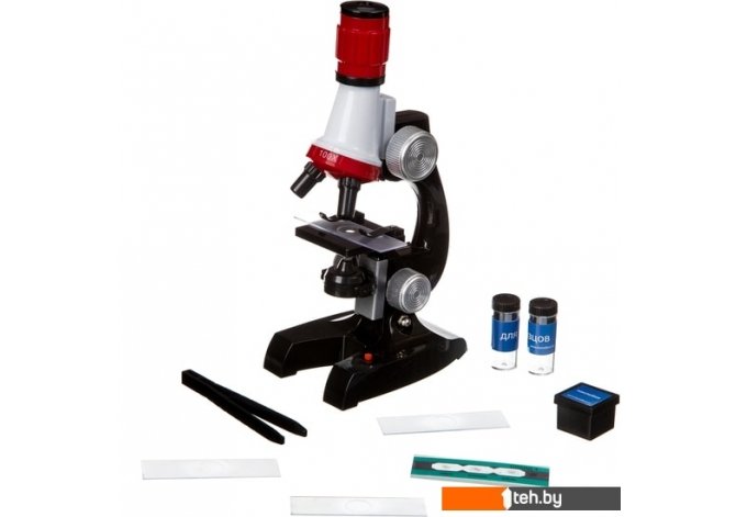 | Информация | Микроскоп представляет собой комбинацию линз в оптическом приборе. В основном используется для увеличения мелких предметов и микроорганизмов, которые невозможно разглядеть невооруженным взглядом. Микроскоп используется В биологии, бактериологии, гистологии, в разработке лекарств и в различных научных и клинических испытаниях. Микроскоп состоит из окуляра микроскопа, фокусирующего колеса, револьверного устройства, трёх объективов 100х, 400х, 1200х увеличение держателя для образца , предметного столика, подсветки, колеса регулировки, основания и защитной крышки окуляра. В набор так же входят 1 4 пустых предметных стекла и 1 слайд с готовыми образцами 2 Контейнер 3 Наклейки для образцов 4 Флаконы для образцов 5 Пинцет. Микроскоп оснащен дополнительным освещением. Для работы с набором понадобятся 2 батарейки АА не входят в набор. |
