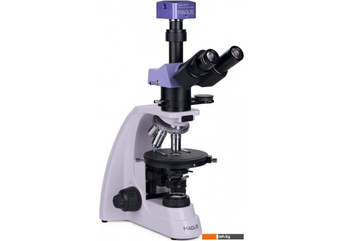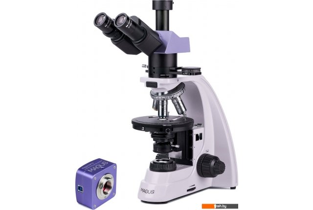 | Информация | - Микроскоп идеально подходит для изучения анизотропных геологических, биологических и полимерных объектов как в поляризованном, так и в обычном свете. Он использует оптическое свойство двойного лучепреломления, позволяя формировать яркие и высококонтрастные изображения, которые меняют цвет при вращении столика. - Объективы микроскопа свободны от внутренних напряжений, а в промежуточном тубусе находятся анализатор и линза Бертрана, а также слот для установки компенсаторов. Этот инструмент находит применение в кристаллографии, петрографии, минералогии, криминалистике, медицине и других научных областях. - Цифровая камера MAGUS CBF70 с разрешением 21 Мпикс и матрицей 4/3" предназначена для работы в светлом поле. Она формирует реалистичные изображения с разрешением 5280x3954 пикселей и идеально подходит для объективов 4х, 10х, 20х и 40х. При максимальном разрешении камера записывает видео с частотой 17 кадров в секунду, что достаточно для точной настройки фокуса. - При снижении разрешения частота записи увеличивается до 192 кадров в секунду, что делает её идеальной для демонстраций и наблюдений за подвижными объектами. Камера оснащена интерфейсом USB 3.0, обеспечивая высокую скорость передачи данных, что делает её отличным выбором для профессиональной работы в лабораториях и учебных заведениях. - Тринокулярная визуальная насадка позволяет устанавливать цифровые устройства захвата изображения, а переключатель светового потока направляет свет на камеру или окуляры. Диоптрийная подвижка на левом окулярном тубусе обеспечивает удобство в работе. - Револьверное устройство на 5 объективов позволяет легко менять увеличения, а конструкция с наклоном к штативу освобождает пространство на предметном столике. Гнезда револьвера центрируются для точного совмещения оптической оси. - Объективы-планахроматы на бесконечность специально разработаны для исследований в поляризованном свете, обеспечивая отсутствие ложных оптических эффектов. Они рассчитаны на работу с покровным стеклом толщиной 0,17 мм. - Коаксиальные рукоятки фокусировки расположены удобно, позволяя пользователю работать в расслабленной позе. Механизм фокусировки обеспечивает быструю настройку после смены объекта исследования. - Предметный столик вращается на 360° и имеет градуировку угла поворота, что позволяет точно измерять изменения цвета образца. Центровка столика осуществляется с помощью двух винтов для точного совпадения оси вращения с оптической осью. - Галогенная лампа обеспечивает комфортное освещение с цветовой температурой, подходящей для работы с увеличениями от 4х до 100х. Осветительная система с регулируемой диафрагмой и конденсором Аббе позволяет настраивать освещение по Кёлеру. - Правильная настройка по Кёлеру значительно повышает качество изображения, обеспечивая равномерное освещение и удаляя артефакты. - В промежуточной насадке находятся анализатор и линза Бертрана для наблюдения объектов в поляризованном свете. Компенсаторы усиливают контраст объектов с низким двулучепреломлением. - Микроскоп комплектуется разнообразными аксессуарами, включая дополнительные объективы и окуляры, что расширяет его функциональность. Цифровые камеры позволяют выводить изображение на монитор и сохранять его в виде файлов. - Основные особенности микроск