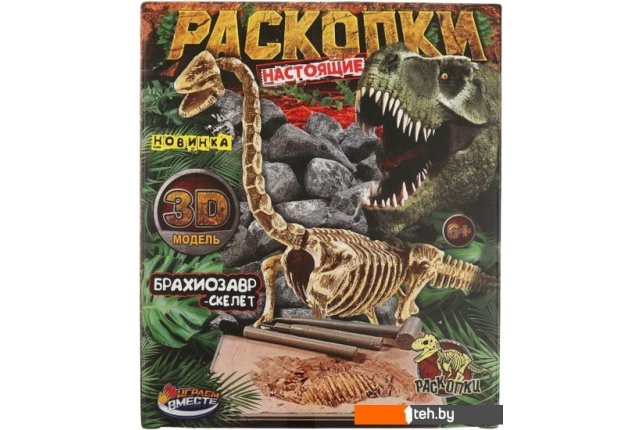 | Информация | Игровой набор «Брахиозавр» из серии «Настоящие раскопки» ТМ «Играем вместе» непременно понравится юным палеонтологам. Юному палеонтологу предстоит принять участие в настоящих раскопках: он будет самостоятельно откалывать гипс, извлекать и очищать скелет динозавра, используя специальные инструменты. А после раскопок ребёнок сможет использовать получившуюся 3D-модель в своих играх или в качестве части коллекции - серия представлена несколькими видами древних ящеров. |