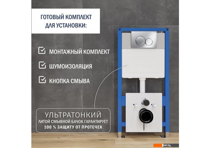 | Информация | - Инсталляция Lauter — товар европейского качества. - Рама инсталляция выполнена из стали и покрыта специальной краской для защиты от коррозии. - При помощи регулируемых ножек можно менять высоту расположения сантехники, подстраивая её под габариты помещения. - Бачок, входящий в состав инсталляции, полностью изолирован, что предотвращает образование конденсата на стенках. - Для простоты обслуживания, доступ к коммуникациям осуществляется через ревизионное отверстие клавиши. - Кнопка инсталляции — это инструмент, с помощью которого сливается вода из скрытого бачка подвесного унитаза. - Существует несколько видов, отличие которых заключается в разности механизмов, наборе функций и цене. - Панель Lauter олицетворяет ненавязчивую и безотказную работу, несравненное удобство и долговечность. - Механическое управление самый применяемый, недорогой и простой вариант – срабатывает от простого нажатия кнопки. - Кнопка смыва Lauter оснащена двумя кнопками, это позволяет пользователю выбирать, какой объем воды будет сливаться, что оптимизирует коммунальные расходы. - Клавиша Lauter выполнена из высококачественного пластика. - Благодаря специальному покрытию на кнопке не остаются следы пальцев. |