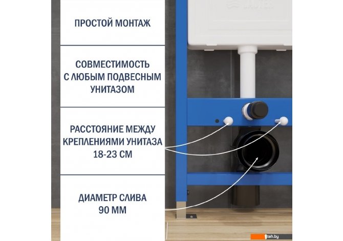 | Информация | - Инсталляция Lauter — товар европейского качества. - Рама инсталляции выполнена из стали и покрыта специальной краской для защиты от коррозии. - При помощи регулируемых ножек можно менять высоту расположения сантехники, подстраивая её под габариты помещения. - Бачок, входящий в состав инсталляции, полностью изолирован, что предотвращает образование конденсата на стенках. - Для простоты обслуживания, доступ к коммуникациям осуществляется через ревизионное отверстие клавиши. - Кнопка инсталляции — это инструмент, с помощью которого сливается вода из скрытого бачка подвесного унитаза. - Существует несколько видов, отличие которых заключается в разности механизмов, наборе функций и цене. - Немалую роль при их выборе играет внешний вид, цвет, материал изготовления. - Панель Lauter олицетворяет ненавязчивую и безотказную работу, несравненное удобство и долговечность. - Механическое управление самый применяемый, недорогой и простой вариант — срабатывает от простого нажатия кнопки. - Кнопка смыва Lauter оснащена двумя кнопками, это позволяет пользователю выбирать, какой объем воды будет сливаться, что оптимизирует коммунальные расходы. - Клавиша Lauter выполнена из высококачественного пластика. - Благодаря специальному покрытию на кнопке не остаются следы пальцев. |