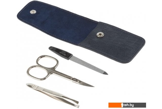 | Комплектация | • ножницы маникюрные — углеродистая сталь, никелированное покрытие, 9 см. • пилка металлическая — углеродистая сталь, хромированное покрытие, 9 см. • пинцет скошенный — нержавеющая сталь, никелированное покрытие, 8 см. |