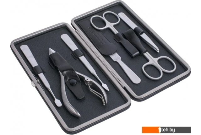 | Комплектация | ножницы для кутикулы и ногтей, два шабера в виде копья и лопатки, наклонный пинцет, металлическая пилочка и кусачки для ногтей |