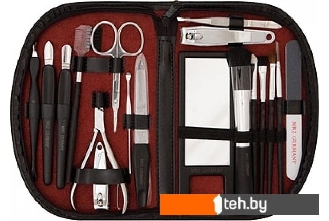 | Комплектация | пилка для ногтей, ножницы для кутикулы, пинцет, книпсер (?2), триммер для кутикулы, шабер, пушер, пилка-полировка, палочка для отодвигания кутикулы |
