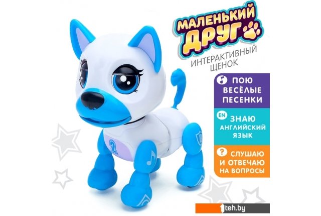 | Информация | Интерактивный щенок «Маленький друг» станет верным спутником вашего ребёнка. Игрушку можно взять с собой на прогулку, в школу или детский сад, а также весело поиграть дома. Маленький любимец поёт песенки, рассказывает стишки, реагирует на касания, отвечает на вопросы и знает английский язык! С таким питомцем ребёнку будет весело, а для родителей решится проблема содержания четвероногого друга. |