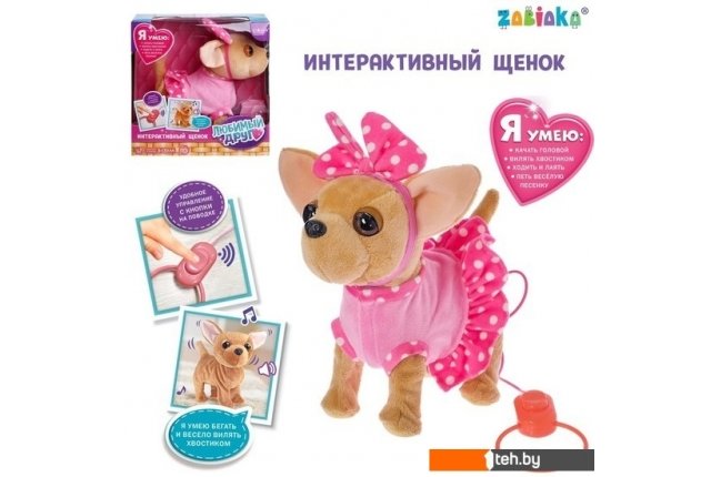 | Информация | Интерактивный щенок «Мой друг» станет верным другом для вашего ребёнка. С таким питомцем ребёнку будет весело, а для родителей решится проблема содержания четвероногого друга. Игрушку можно взять с собой на прогулку, в школу или детский сад, а также весело поиграть дома. 4 функции Качает головой. Виляет хвостом. Ходит. Лает. |
