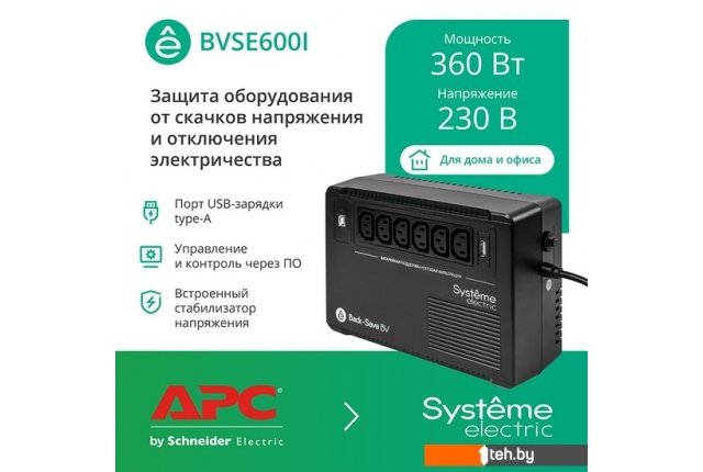 Фотографии, описание и технические характеристики модели бесперебойника Systeme Electric BVSE600I взяты из открытых источников, официального сайта производителя или представительства Systeme Electric в Республике Беларусь.