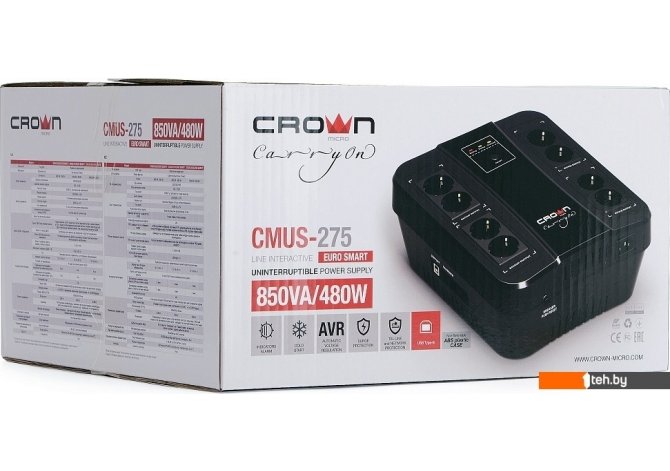 Фотографии, описание и технические характеристики модели бесперебойника CrownMicro Smart CMUS-275 Euro взяты из открытых источников, официального сайта производителя или представительства CrownMicro в Республике Беларусь.