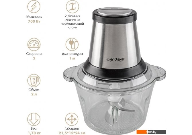 | Информация | - Новый измельчитель Endever Sigma-131 объединяет мощность, надежность и удобство, делая процесс приготовления еще проще и эффективнее. С мощностью 700 Вт и чашей объемом 2 литра, вы сможете быстро и легко измельчать разнообразные продукты. - Двойные лезвия и ручка из нержавеющей стали гарантируют отличную прочность и долговечность, позволяя без труда обрабатывать даже самые твердые ингредиенты. Высокопрочная чаша из ЭКО-стекла не только надежна, но и безопасна для использования с пищевыми продуктами. - Противоскользящая подставка обеспечивает стабильность и безопасность во время работы с измельчителем. Вы сможете наслаждаться простотой использования и уверенностью в надежности процесса. - Измельчитель Sigma-131 предлагает две скорости работы, что позволяет выбрать оптимальный режим для обработки различных продуктов. Благодаря герметичной защите от брызг, ваша кухня останется чистой и аккуратной. - Высокая производительность и многофункциональность этого измельчителя позволяют быстро справляться с нарезкой и измельчением фруктов, овощей, трав, мяса, рыбы, твердого сыра и других продуктов. Вы сможете готовить разнообразные блюда и наслаждаться их уникальным вкусом и текстурой. |