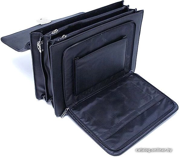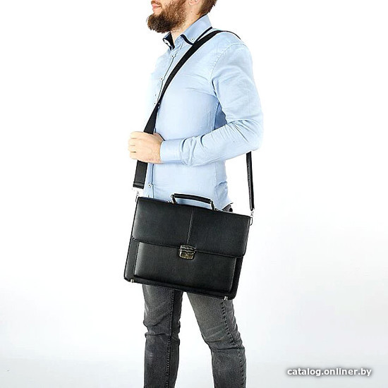 Информация | Классический мужской деловой портфель от бренда Poshete выполнен из мягкой искусственной кожи, с отличным качеством отделки и металл ической фурнитурой. Портфель чёрного цвета, с эргономичной ручкой и съёмным текстильным ремнём, который регулируется по длине, дно оснащено «ножками», для застёжки есть ключик. Сзади прорезной карман на молнии, спереди клапан на замке-щеколде, под ним откидной карман-папка на молнии с двумя кармашками, три независимых отделения для документов и два средника на молниях. |