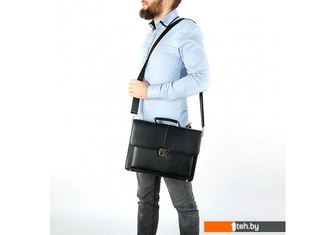 | Информация | Классический мужской деловой портфель от бренда Poshete выполнен из мягкой искусственной кожи, с отличным качеством отделки и металл ической фурнитурой. Портфель чёрного цвета, с эргономичной ручкой и съёмным текстильным ремнём, который регулируется по длине, дно оснащено «ножками», для застёжки есть ключик. Сзади прорезной карман на молнии, спереди клапан на замке-щеколде, под ним откидной карман-папка на молнии с двумя кармашками, три независимых отделения для документов и два средника на молниях. |