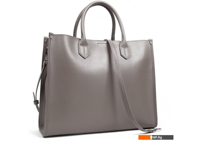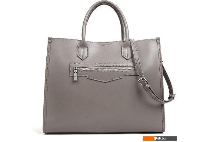 | Информация | - Сумка-тоут изготовлена из плотной гладкой кожи. - Вместительная модель имеет три автономных отделения, закрывается на магнитные кнопки и молнию. - Внутри два кармана: открытый для мелких вещей и на молнии. - На дне установлены металлические ножки. - Дополнительно: съемный регулируемый наплечный ремешок. |