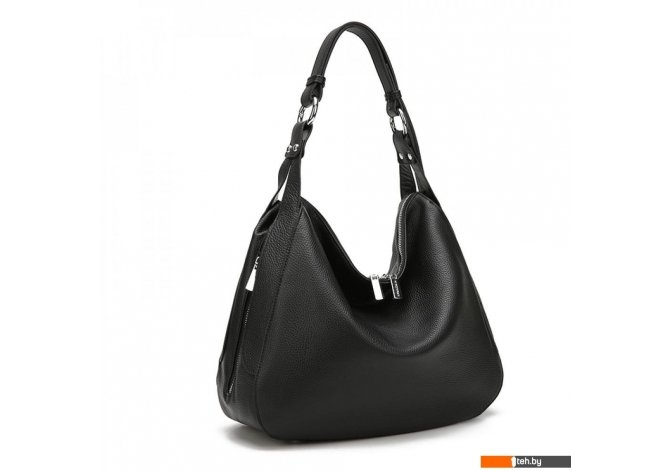 | Информация | - Кожаная женская сумка-мешок с молнией для закрытия. - Внутри два кармана на молнии и два открытых кармашка. - На обратной стороне сумки находится карман на молнии. - Декорирована серебристой фурнитурой. |