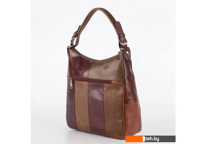 | Информация | Стильная повседневная сумка в оттенках коричневого и бордового цвета. Декорирована вставками и контрастной отстрочкой. Отделение на молнии. |
