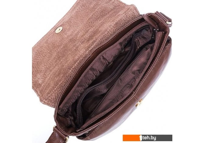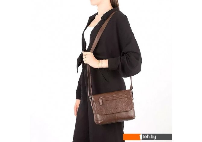 | Информация | Стильная сумка от бренда Poshete выполнена из натуральной кожи, в коричневом цвете. Модель с несъемным регулируемым плечевым ремнем. Закрывается клапаном на магнитной кнопке. На клапане имеется прорезной карман на молнии, под клапаном – накладной карман на молнии и отделение на молнии. Внутри отделения: текстильная подкладка, карман на молнии и накладной карман. На задней стороне – карман на молнии. |