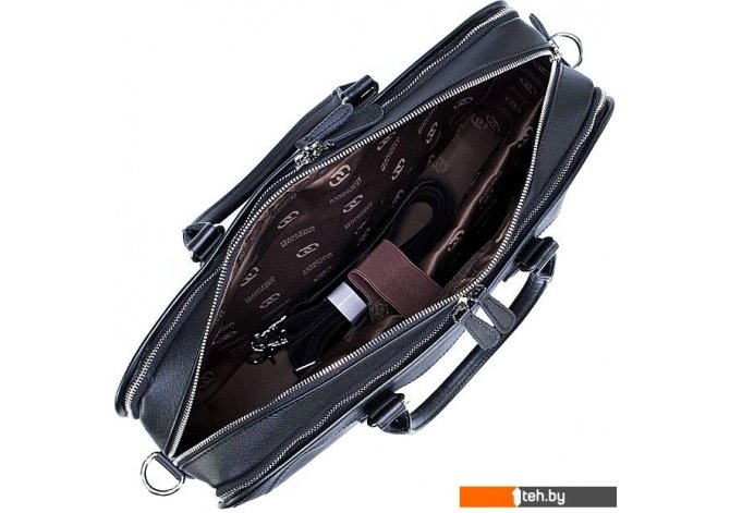 | Информация | - Сумка от торговой марки Francesco Molinary из натуральной кожи черного цвета. - Функциональная модель с двумя ручками и съемным регулируемым плечевым ремнем с наплечником. - Три отделения на молнии, с фирменной подкладкой. - В основном отделении — накладной карман с уплотненной стенкой для ноутбука. - Крайние отделения закрываются молнией по трем сторонам, что обеспечивает удобный доступ. - В заднем отделении: карман на молнии, два накладных кармана. - В переднем — органайзер из накладных карманов. - На задней стороне — карман на молнии с эластичным фиксатором. - Дно оснащено металлическими ножками для защиты от износа. - Размер подходит для документов формата А4. |