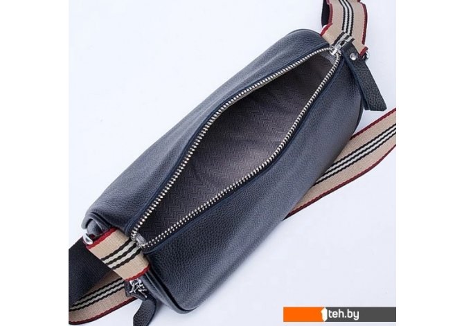 | Информация | Сумка кросс-боди из зернистой кожи. Модель с широким несъемным регулируемым плечевым ремнем из текстильного материала с рисунком «в полоску». Отделение на молнии. Нижняя часть по дну декорирована молнией. |