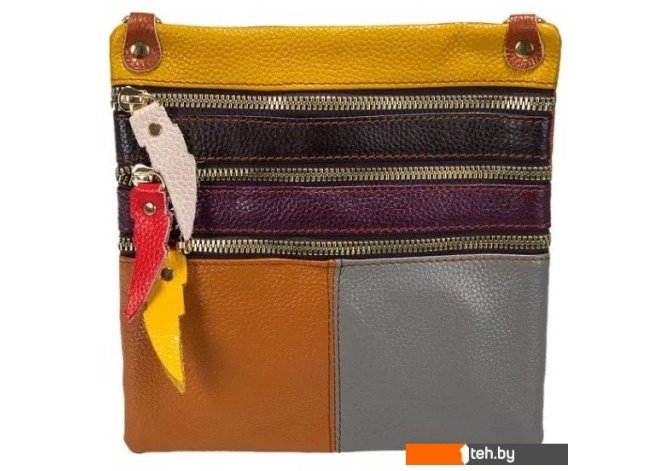| Информация | - Цвет товара зависит от партии поставки. - Оригинальная сумка-планшет изготовлена из натуральной кожи яркой расцветки в стиле patchwork. - Модель со съемным плечевым ремнем. - На передней стороне — три кармана на молнии, на задней — карман на молнии. - Фурнитура золотистого цвета, планшет декорирован кожаными пуллерами в виде листиков. |