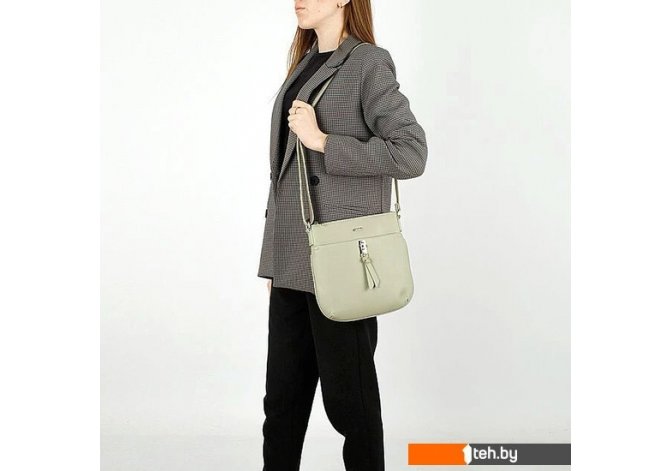 | Информация | Сумка от торговой марки Ola из искусственной кожи светло-зеленого цвета. Плоская модель вертикальной ориентации с несъемным регулиру емым плечевым ремнем. Отделение на молнии. Внутри: фирменная подкладка, карман на молнии. На лицевой стороне – накладной карман на поворотном замке. На задней стороне – карман на молнии. |