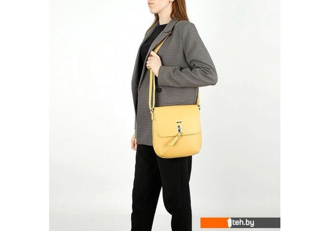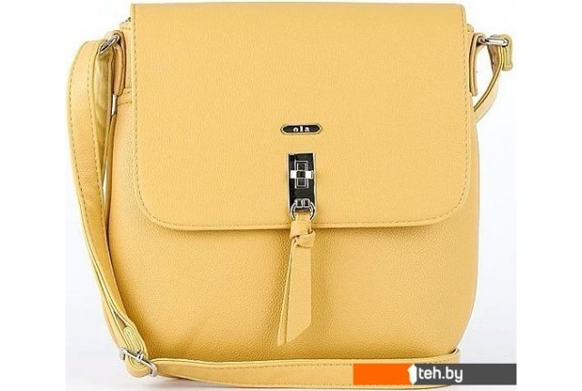 | Информация | Сумка от торговой марки Ola из искусственной кожи желтого цвета. Плоская модель вертикальной ориентации с несъемным регулируемым пле чевым ремнем. Клапан на поворотном замке закрывает накладной карман и отделение на молнии. Внутри: фирменная подкладка, карман на молнии. На задней стороне – карман на молнии. |