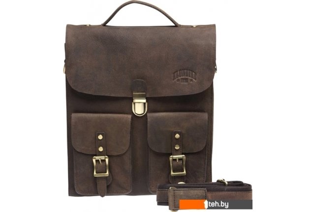 | Информация | Высококачественная натуральная кожа в темно-коричневом цвете | Съемный ремень на плечо, 2 больших внешних отделения на магнитном замке, мягкое отделение для планшета | Мужская сумка через плечо Сумка «Бретт» фирмы «Klondike» выгодно отличается по стилю от других сумок для документов. Её характерная особенность – два больших отделения снаружи на магнитных замках, которые предоставляют быстрый доступ к содержимому сумки. Сумка оснащена съемным ремнем на плечо, который регулируется на разные длины. Также сумка содержит 2 подразделения для ручек, 2 больших кармана и мягкое отделение для планшета размером 24 х 22см. Дополнительный кожаный ремень сзади позволяет прикреплять портфель к чемодану. Элегантное тиснение «Klondike» на лицевой стороне и небольшое, ненавязчивое тиснение c надписью 'made with passion' на тыльной стороне, мастерски сделаны вручную на высочайшем уровне. Прочные металлические части латунного цвета подчеркивают высокое качество продукта. Благодаря своим размерам (длина – 30 см, высота – 35 см и глубина – 7 см) сумка позволяет хранить многочисленные вещи, например, большую папку и вещи схожего размера. Высококачественный металлический замок обеспечивает быстрый доступ к содержимому сумки. Сумка фирмы «Klondike» – надежный компаньон на вашей стороне. |