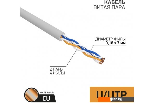 | Информация | ? Кабель витая пара категории 5е серого цвета предназначен для создания локальных сетей, компьютерных сетей, подключения устройств охранной системы, телефонии, интернета, камер видеонаблюдения и т.п. ? Используется для изготовления соединительных шнуров - Patching cord. Применяется для прокладки внутри помещений. ? Универсальность и широкое распространение позволяют подключить практически любое оборудование. ? Конструктивно кабель без экрана состоит из центрального проводника из высокоочищенной бескислородной меди в изоляции HDPE и оболочки из ПВХ. ? За счет усиления взаимодействия между каждой парой проводников, пользователю доступен высокий уровень эффективности передачи данных. ? Гибкая форма обеспечивает удобное размещение кабеля в труднодоступных местах без образования заломов на местах сгиба. |