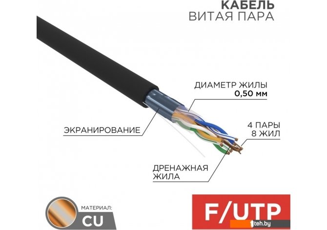 | Информация | - Кабель витая пара черного цвета предназначен для создания локальных сетей, компьютерных сетей, подключения устройств охранной системы, телефонии, интернета, камер видеонаблюдения, систем охраны и контроля доступа и т.д. Относится к категории 5е. - Применяется для прокладки вне помещений. Отличается жесткостью. - Взаимодействие между каждой парой проводников усилено, благодаря чему достигается высокий уровень передачи данных. - Электромагнитное излучение, исходящее от электроприборов и силовых кабелей, не влияет на качество сигнала благодаря экранированию из алюминиевой фольги. - Центральный проводник кабеля изготовлен из высокоочищенной бескислородной меди и покрыт изоляцией HDPE. Внешняя изоляция выполнена из безгалогенного компаунда. |