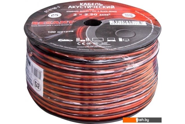 | Информация | - Качественный акустический кабель торговой марки REXANT обеспечивает отличное качество звука для домашней или автомобильной аудиоаппаратуры. - Высокое качество изготовления и широкая область применения делают акустический кабель REXANT идеальным выбором для любого аудиолюбителя. - Акустический кабель 2х2,50 мм? REXANT имеет два параллельных многожильных проводника в изоляции из поливинилхлоридного пластиката красного и черного цвета. - Отличное сочетание цены и качества этой продукции порадует любого аудиолюбителя, цель которого — получить чистый звук по выгодной цене. |