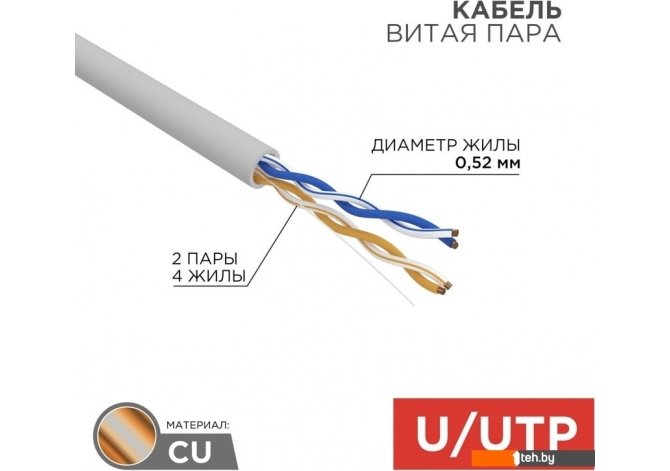 | Информация | - Кабель витая пара U/UTP категории 5е предназначен для создания локальных, домашних и компьютерных сетей, подключения телефонии, интернета, камер видеонаблюдения и устройств охранных систем. - Он подходит для прокладки внутри помещений. - Центральный проводник изготовлен из высокоочищенной бескислородной меди и покрыт изоляцией HDPE, а внешняя изоляция выполнена из безгалогенного компаунда, который при возгорании практически не дымится и не выделяет вредных веществ. - Усиливая взаимодействие между парами проводников, кабель обеспечивает высокую эффективность передачи данных. |