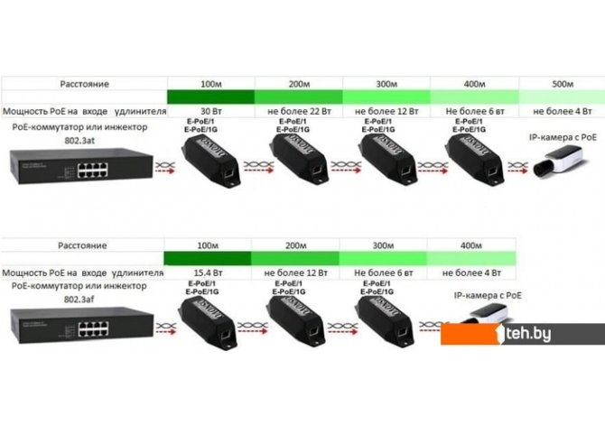 | Информация | Уличный PoE удлинитель 10/100/1000M Gigabit Ethernet предназначен для увеличения расстояния передачи данных Ethernet и питания по технологии PoE по кабелю витой пары. При использовании одного удлинителя общее расстояние передачи увеличивается до 200 м. При каскадном подключении (до 4-х устройств) общее расстояние передачи данных - 500 м.Мощность потребления подключаемых РоЕ устройств - до 22Вт - 100м (х1); до 12Вт - 300м (х2); до 6Вт - 400м (х3); до 4Вт - 500м (х4).Соответствие стандартам PoE: 802.3af, E802.3at.Автоматическое определение подключаемых РоЕ-устройств.Не требует дополнительного источника питания.Уличное исполнение в пластиковом герметичном корпусе с гермовводами.Возможность крепления на стену. |