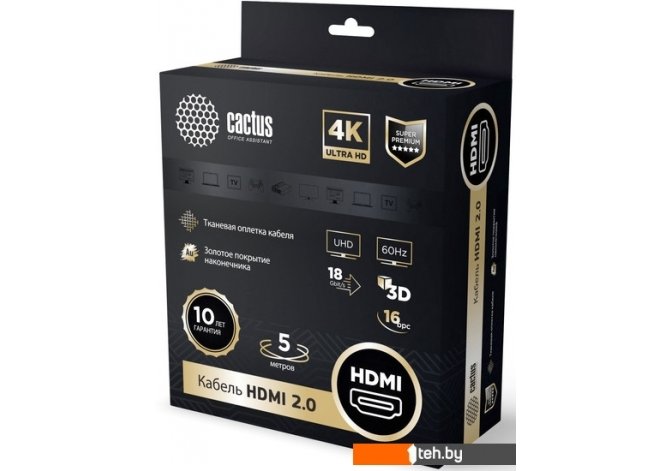 Фотографии, описание и технические характеристики модели Кабеля, адаптера, разветвителя CACTUS HDMI - HDMI CS-HDMI.2-5 (5 м, черный) взяты из открытых источников, официального сайта производителя или представительства CACTUS в Республике Беларусь.