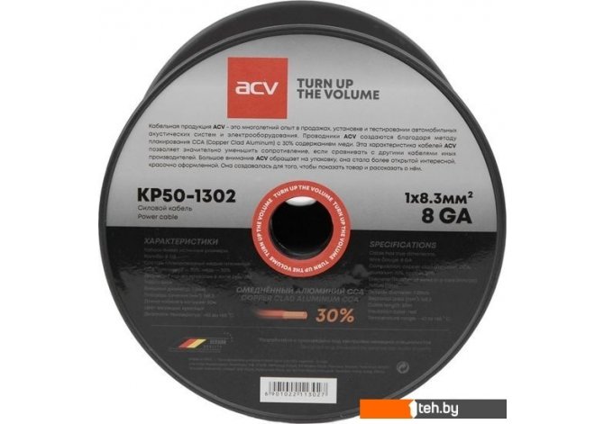 | Информация | Силовой кабель в прочной и гибкой изоляции. Изготовлен по технологии "витая пара". Кабель имеет истинные размеры. Бухта - 50 м. Провода ACV имеют многожильную структуру и не теряют свою гибкость при низких температурах, изготовлены с качественной ПВХ изоляцией. При производстве используются немецкие технологии и трехступенчатая система контроля качества, благодаря чему кабели обеспечивают идеальную передачу питания к усилителю. Материал проводника: Омедненный алюминий в прочной и гибкой изоляции. Сечение: 8 AWG. Диапазон рабочих температур: -40 - +65 °С. |