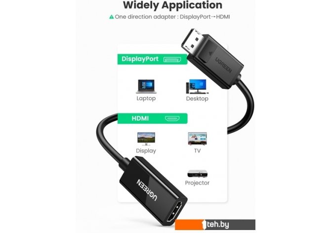 Фотографии, описание и технические характеристики модели Кабеля, адаптера, разветвителя Ugreen MM137 70694 HDMI - DisplayPort (0.25 м) взяты из открытых источников, официального сайта производителя или представительства Ugreen в Республике Беларусь.